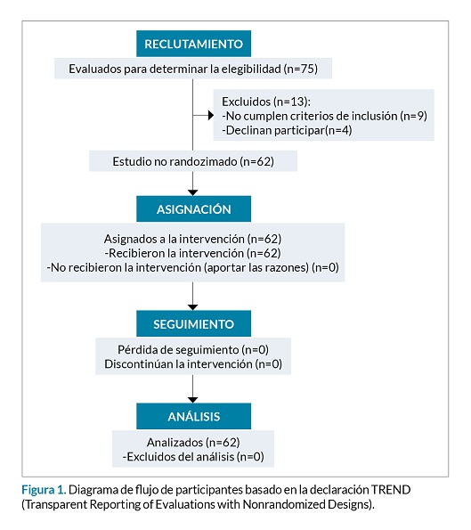 La selección de los participantes fue no aleatoria. El reclutamiento se realizó mediante muestreo consecutivo, incluyendo a todos los pacientes que cumplían los criterios de inclusión establecidos. Se obtuvo el consentimiento informado de los pacientes, para acceder a los datos clínicos informatizados. Intervenciones a estudio